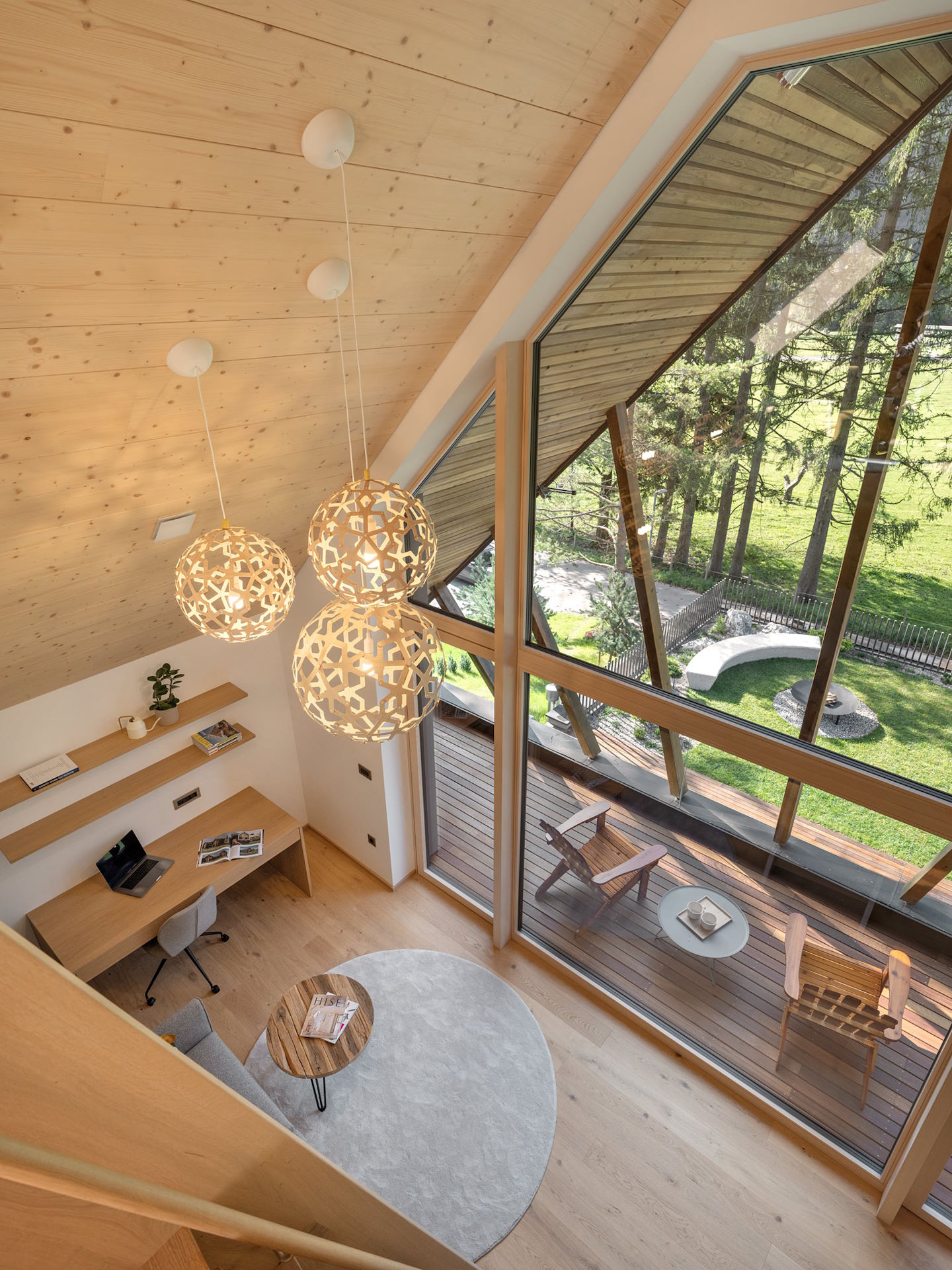 V zavetju gora stoji sončna lepotica, ki vabi svoje lastnike na obisk v vseh letnih časih. Pri izdelavi pohištva po meri so bili izbrani materiali, ki nudijo udobje in toplino. Prevladuje hrast, ki je uporabljena na vsakem kosu pohištva izdelanega po meri. Notranja vrata, kopalniško pohištvo, pohištvo za spalnice in dnevni prostor – vse se med seboj navezuje in dopolnjuje.